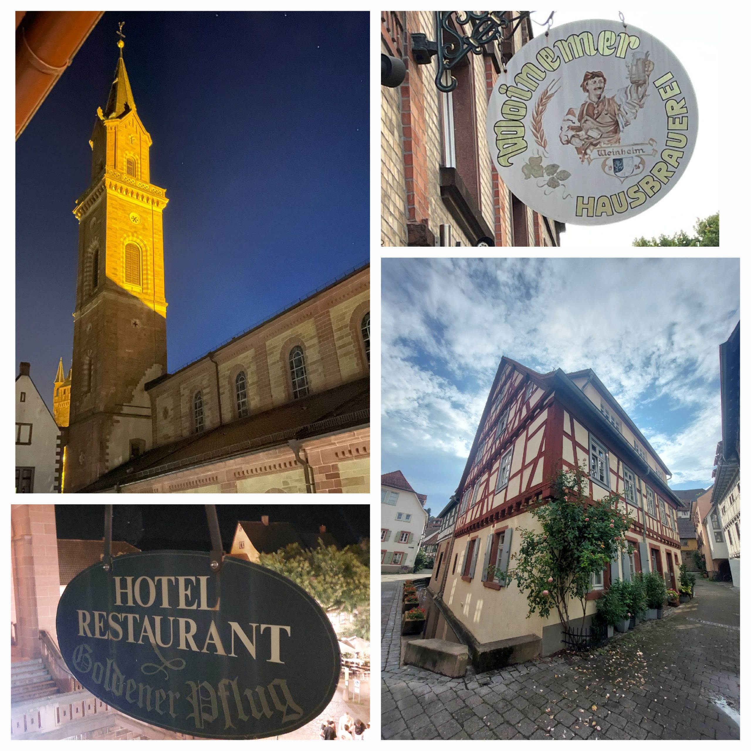 Bevor es am 26. Juli auf die Räder ging, gab es zur Stärkung ein gemeinsames Frühstück. Auf dem Weg nach Gernsheim wurden bereits die ersten Satteltaschen mit Kabelbinder geflickt. Nach einer flüssigen Erfrischung in Gernsheim sind wir bei strahlendem Sonnenschein über Lorsch nach Weinheim ins Hotel gefahren. Am Abend haben wir das sehenswerte Gerberviertel besichtigt und es uns anschließend in der Woinemer Hausbrauerei gut gehen lassen.